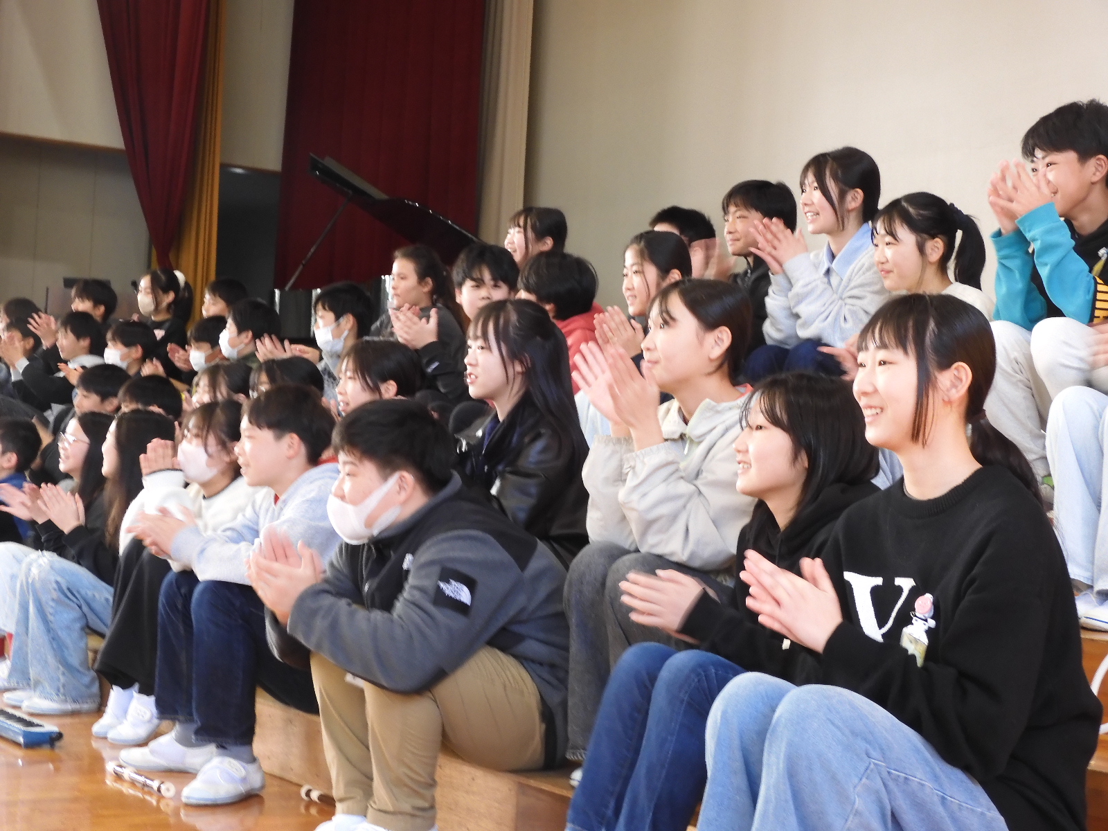 今回の会は、5年生が中心となって企画・運営を行い、子供たちの手で作り上げました。幕開けはなんと、5年生による元気いっぱいの「マツケンサンバ」!会場のボルテージは一気に最高潮に達しました。その後も、各学年から心のこもった歌や可愛らしい踊り、楽しいお芝居が披露され、6年生への「ありがとう」の思いがたっぷりと詰まった盛りだくさんの時間となりました。
