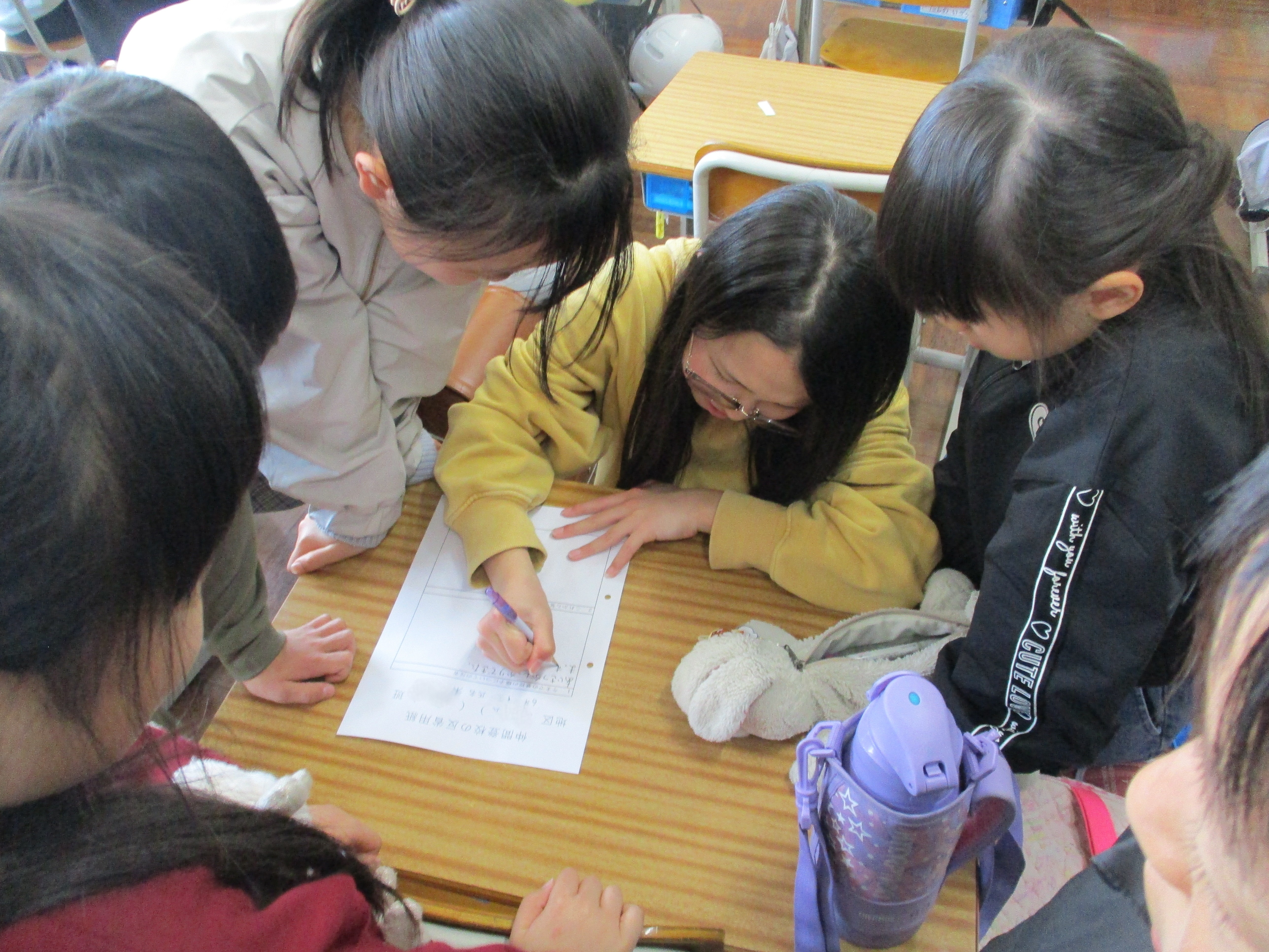 その後は、新しい登校班の編成です。新しいリーダーを中心に、低学年の子をどこに入れるか話し合いながら、並び順を決めました。少し緊張した表情の新しいリーダーたちからは、「みんなをしっかり守るぞ」という頼もしい意気込みが伝わってきました。