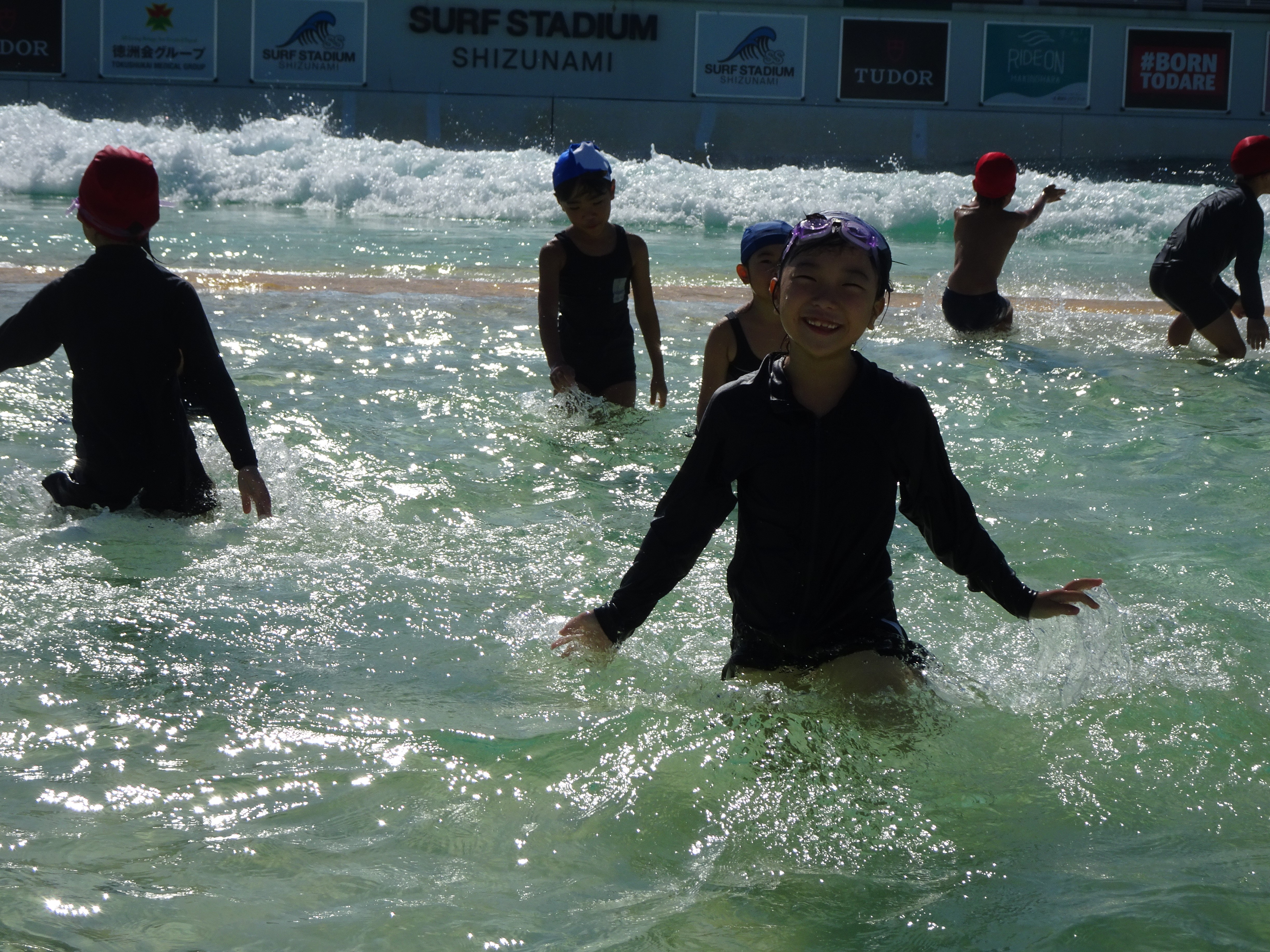 ここは、まるで海にいるかのような、人工的に大きな波が作られるプールです。学校のプールシーズンは終わりましたが、まだまだ暑いこの時期に、子供たちは大喜び。浮き輪を使ってぷかぷかと浮かんだり、友達と水をかけあったりして、歓声をあげました。