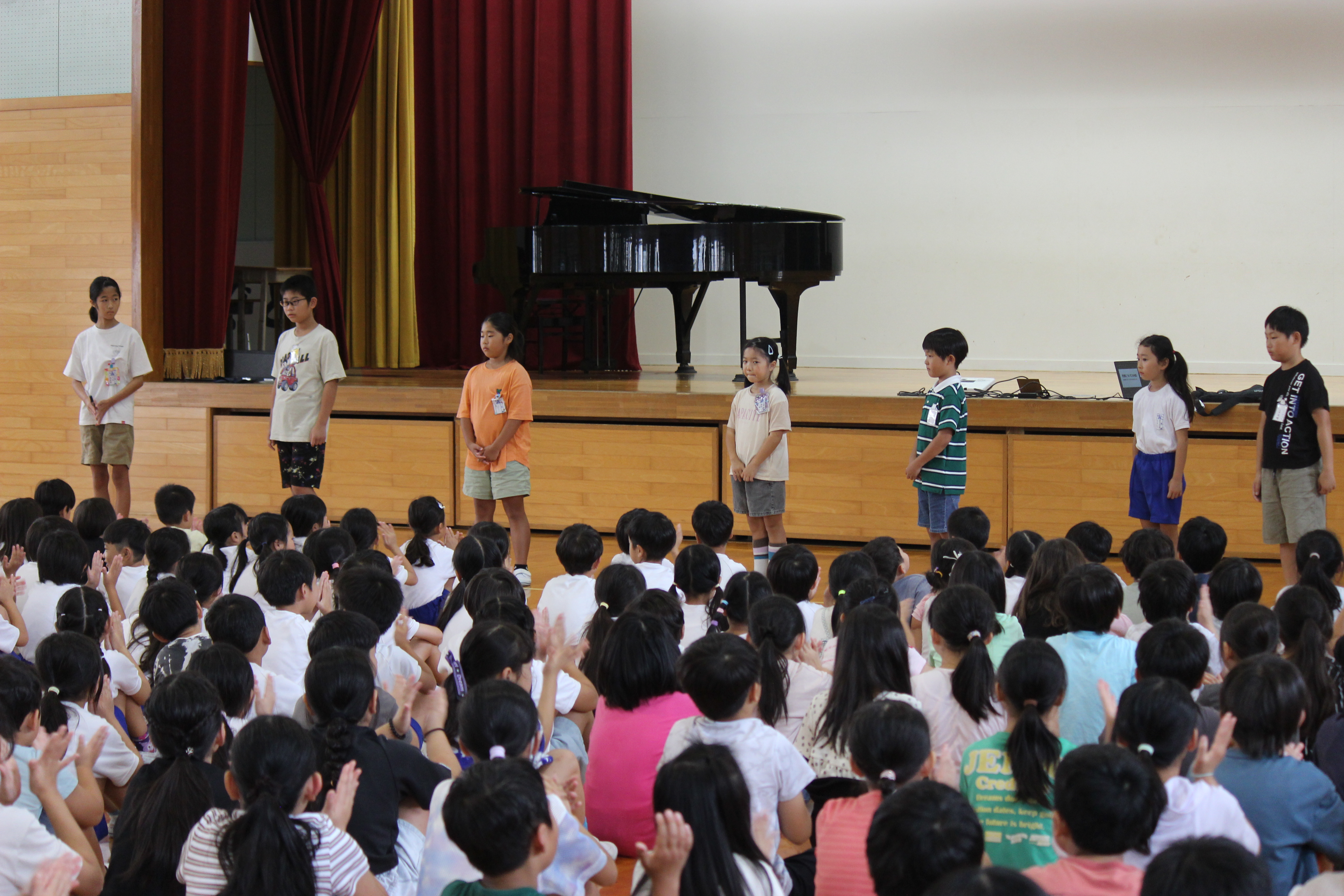 全校で「節目の式☆ステージの集い」を行いました。各学年の代表児童がステージに立ち、これまでの学校生活での成長を振り返り、これからの目標を堂々と発表しました。
