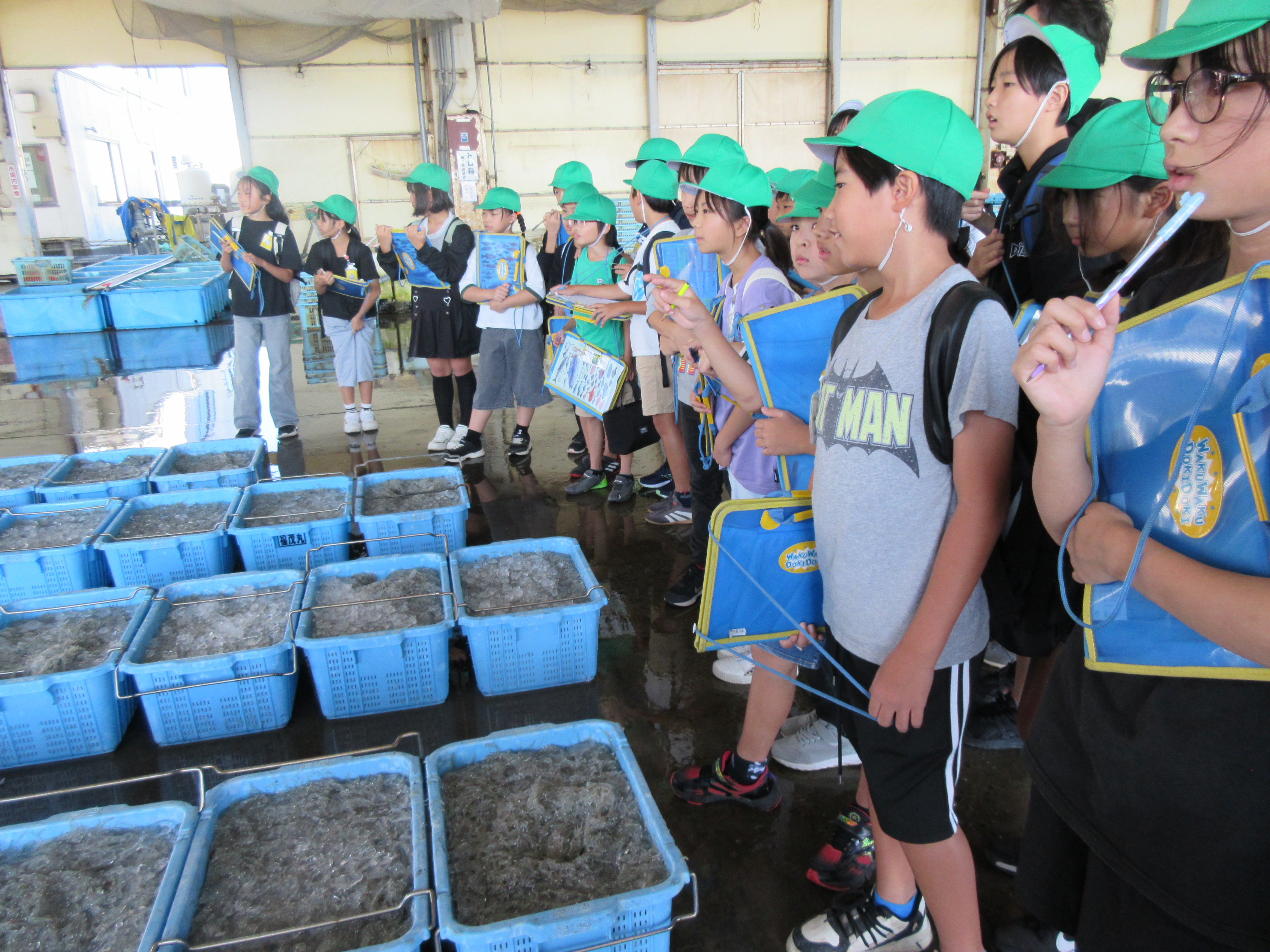 子どもたちは、活気あふれる「しらす」のせりの様子を間近で見学させていただき、その速さと熱気に驚いている様子でした。また、13cm未満の小さな伊勢海老を海に返す放流体験もさせていただき、資源を守る取り組みの大切さを実感しました。